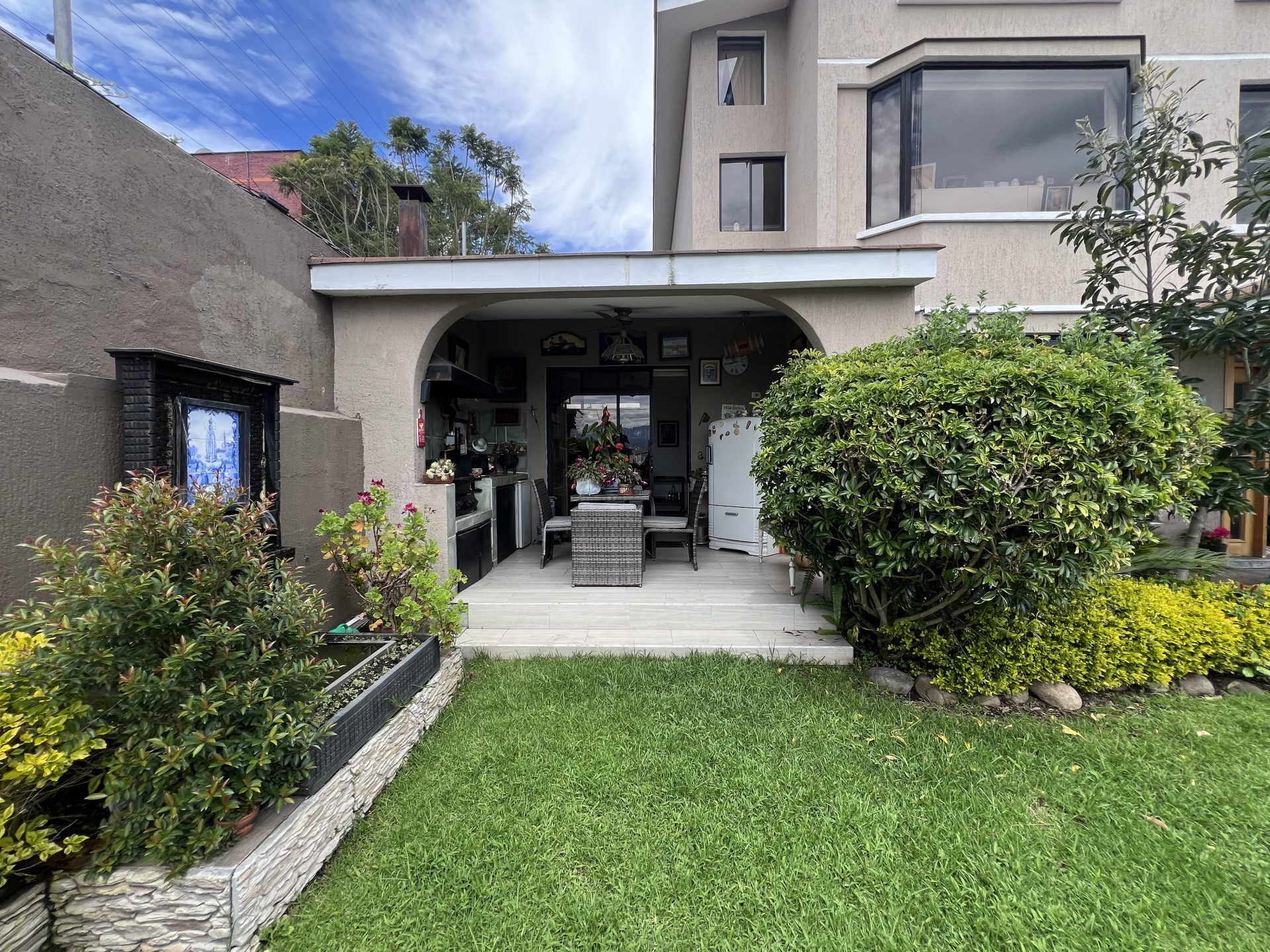 Área de BBQ conectada al jardín