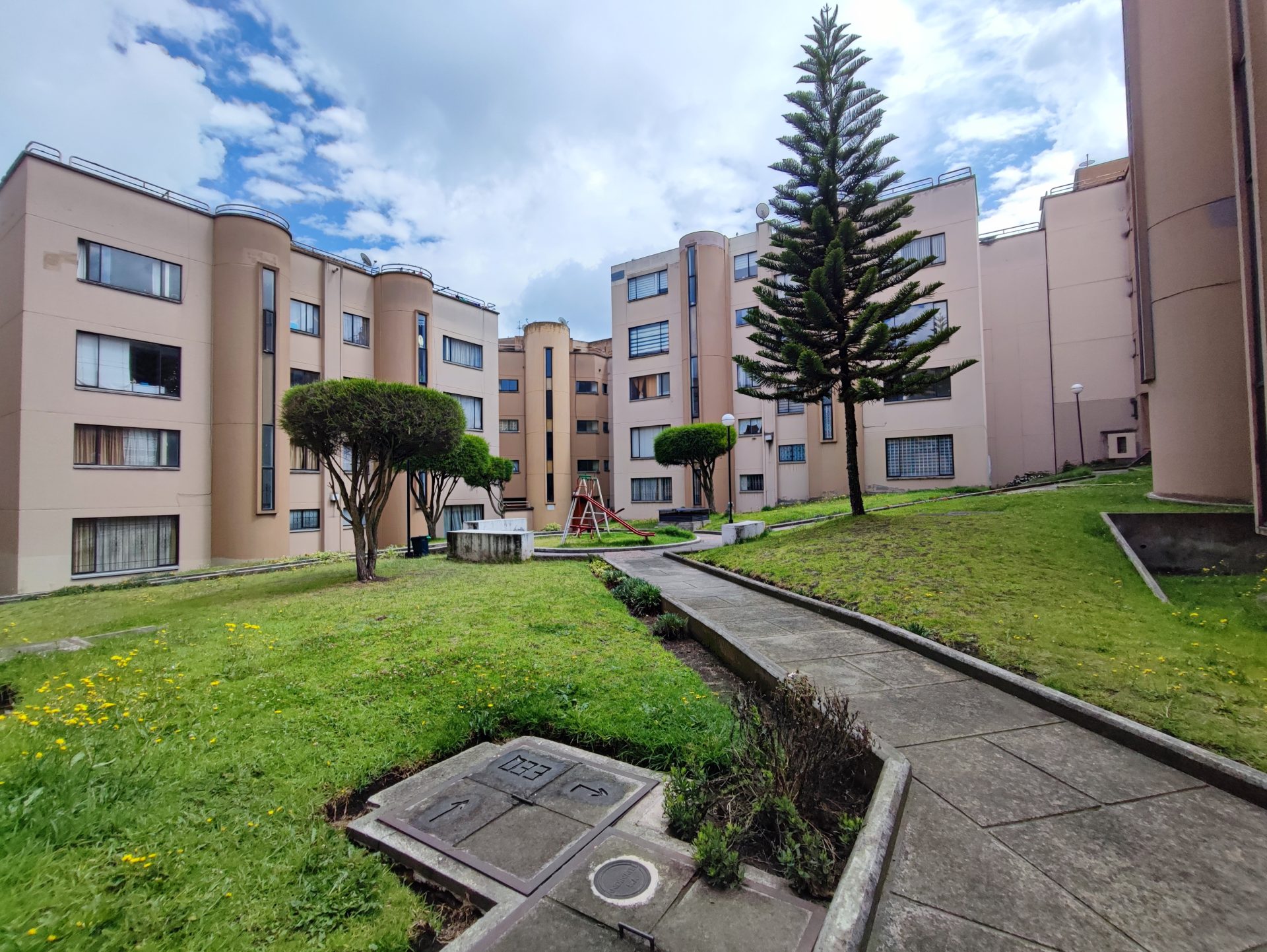el conjunto cuenta con áreas verdes, juegos infantiles, cacha de uso múltiple.