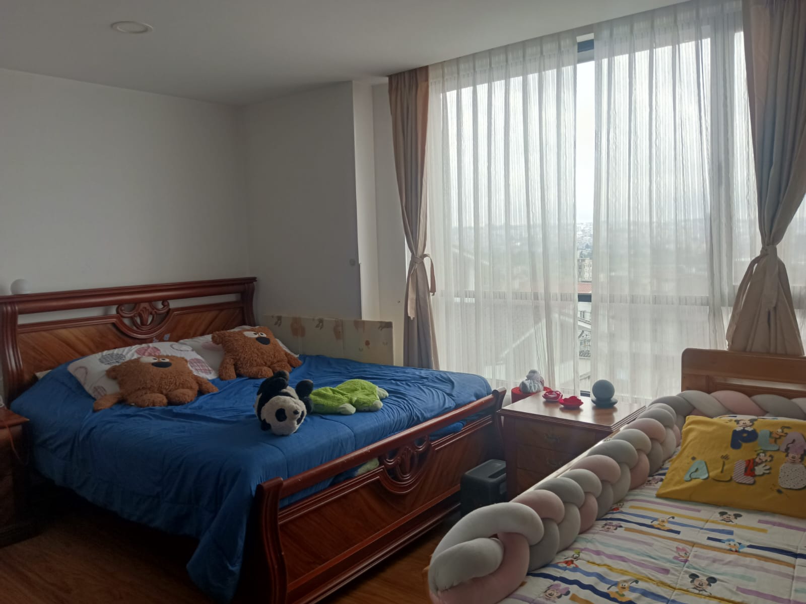 Departamento de dos dormitorios cada uno con su baño, parqueadero, bodega. Ubicación centro norte cerca a colegios, hospitales, parques, supermercados, cuenta con servicio de ascensor y guardianía 24/7, generador para áreas comunales.