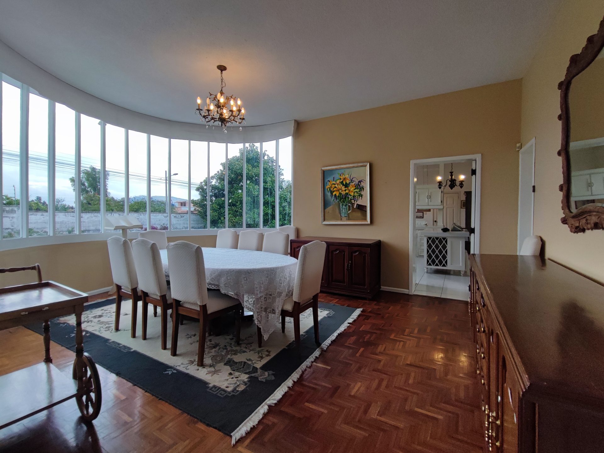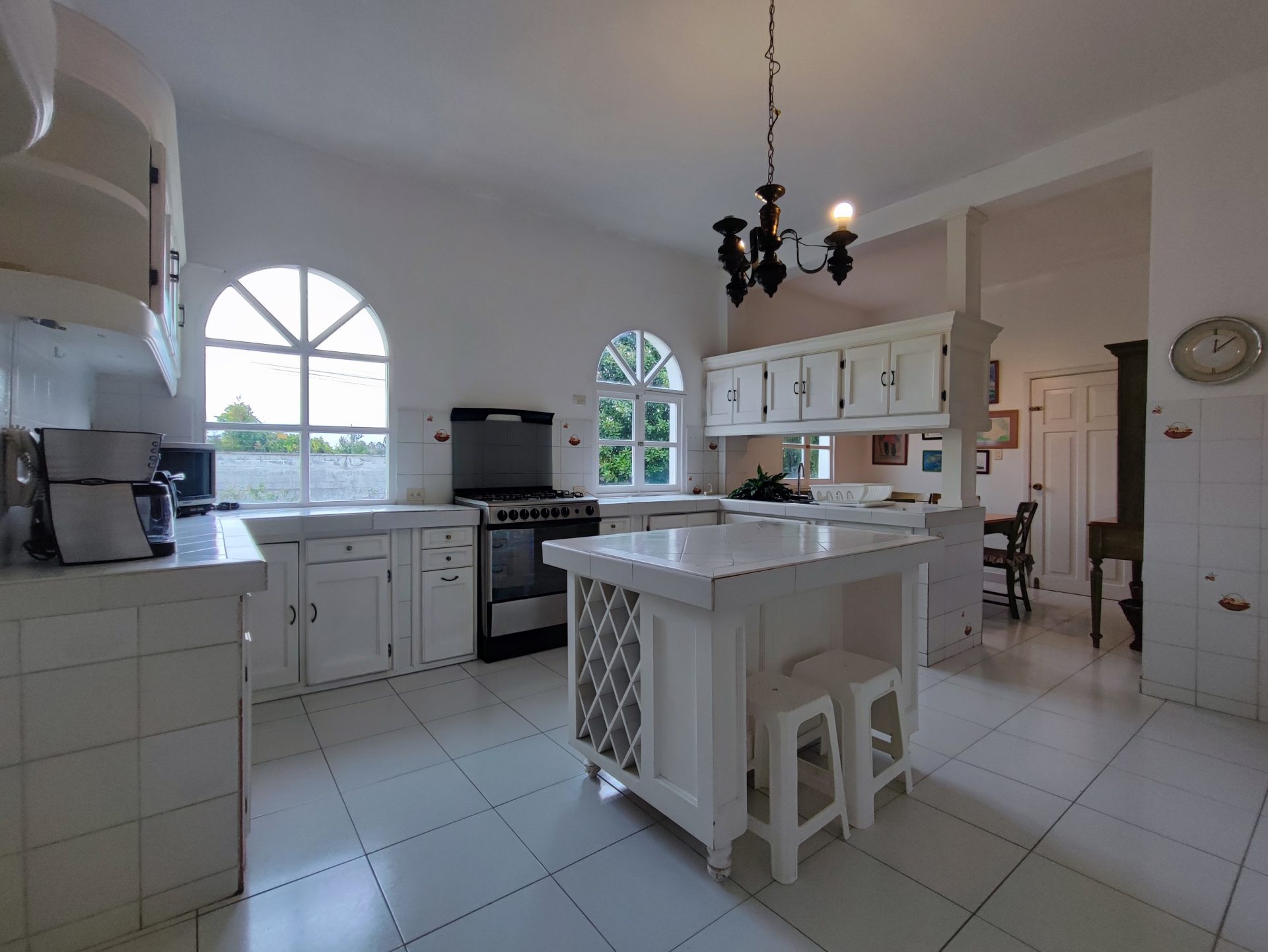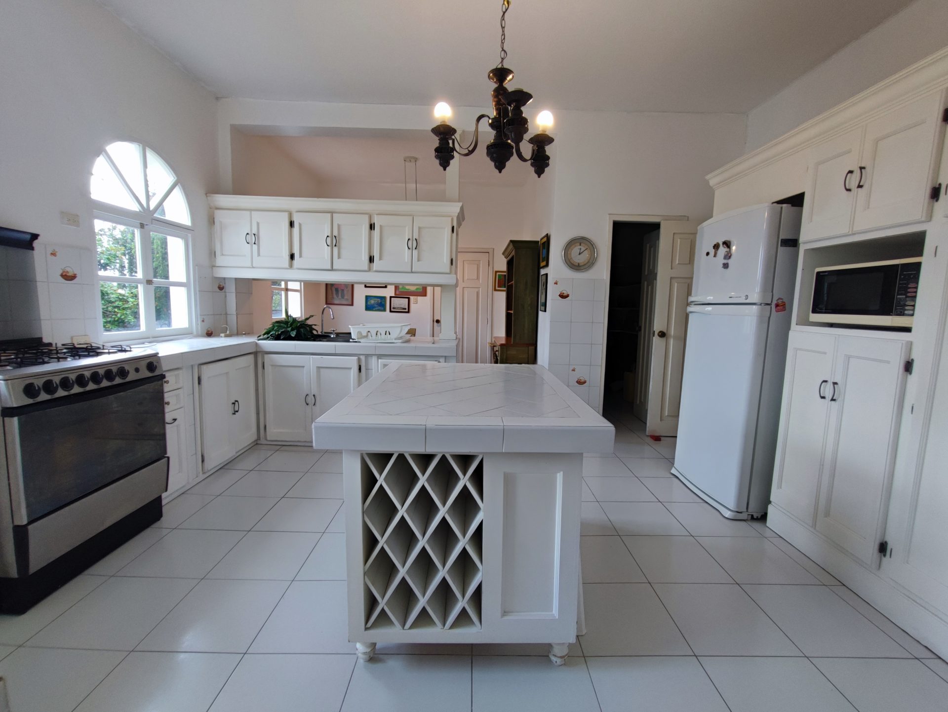 La casa con su entrada principal nos recibe con una sala recibidor, sala principal con chimenea, comedor, baño social, bodega, cocina cerrada con muebles altos y bajos, comedor de diario, alacena, 2 bodegas, cuarto de servicio.