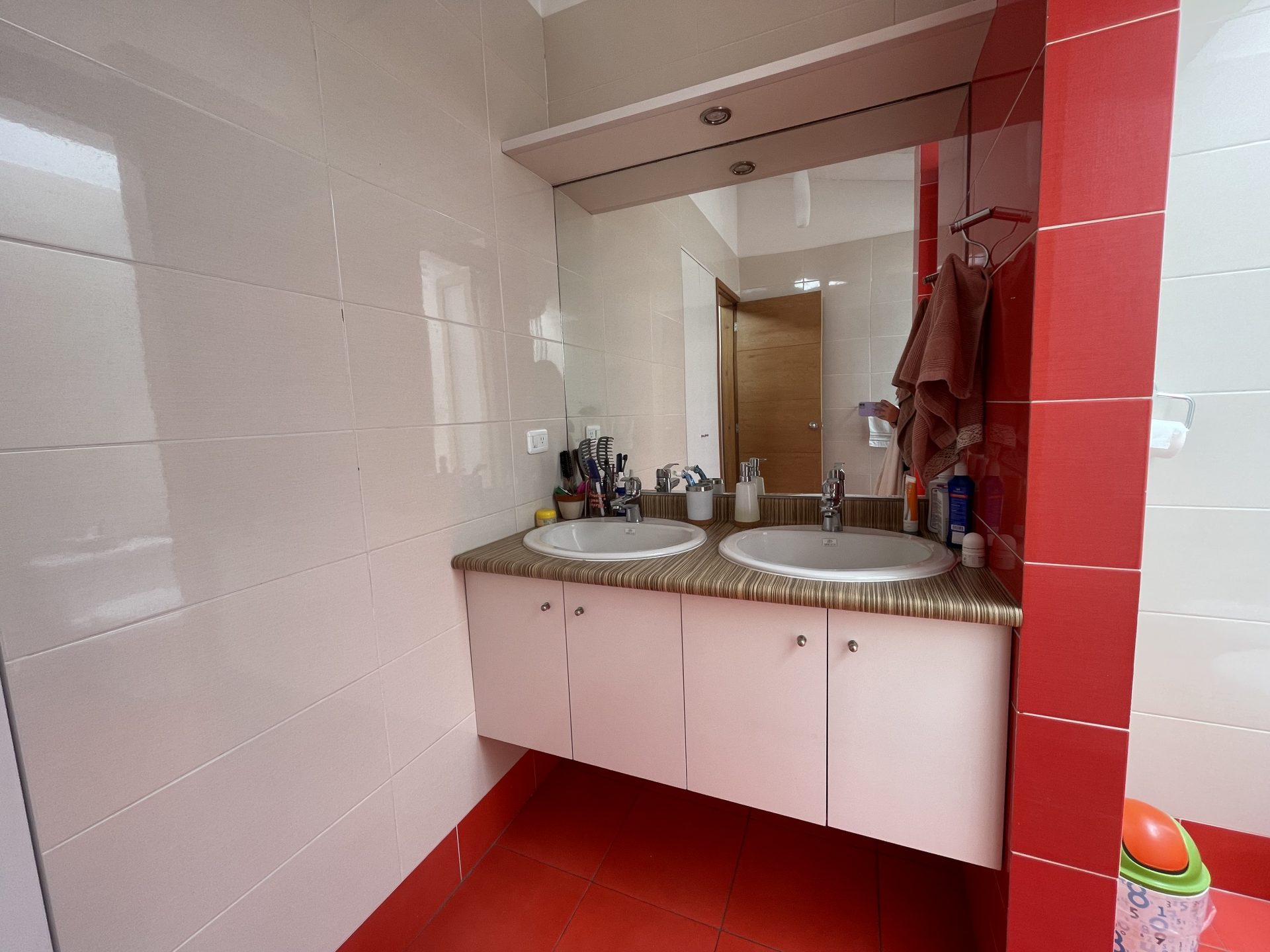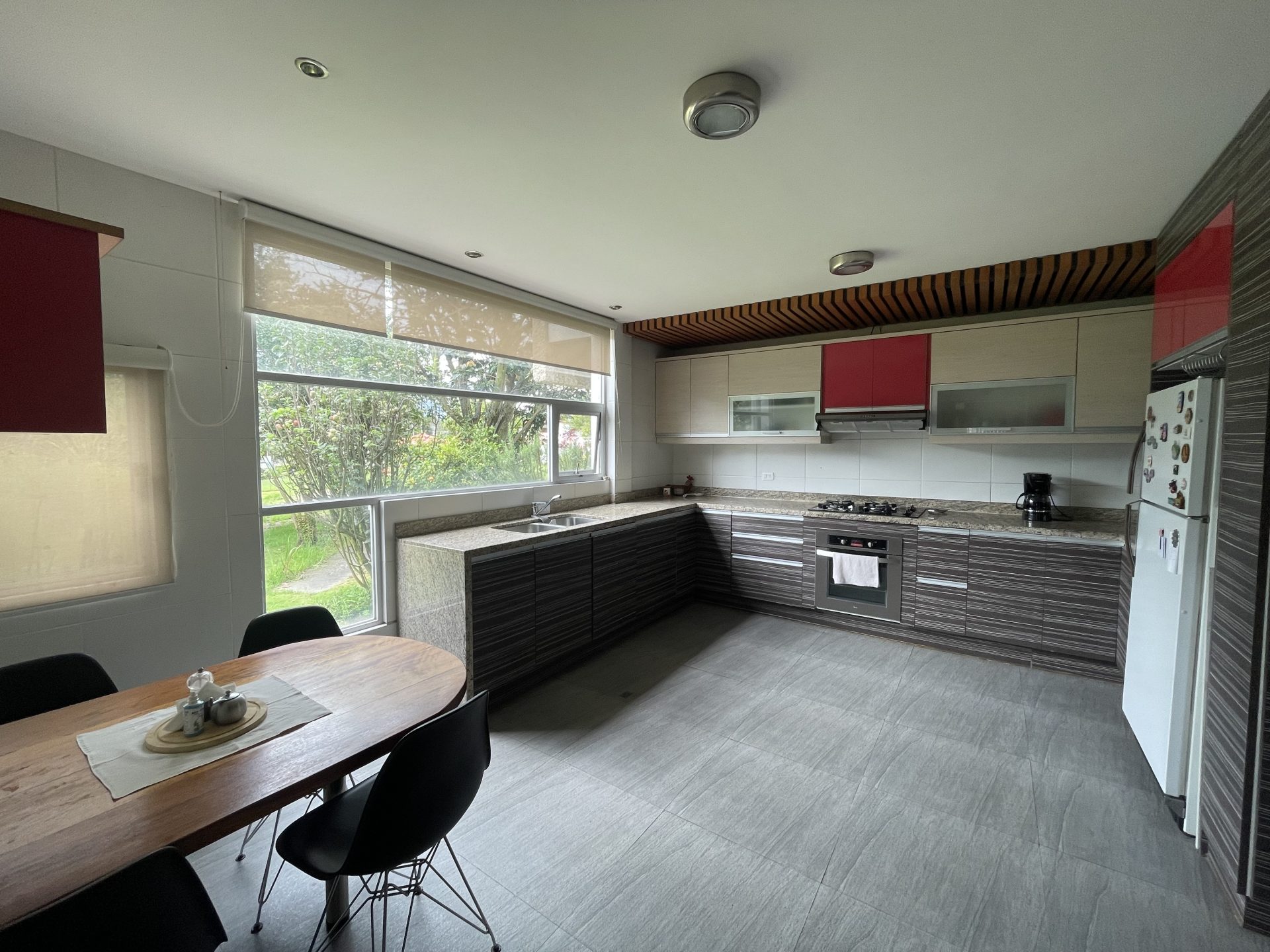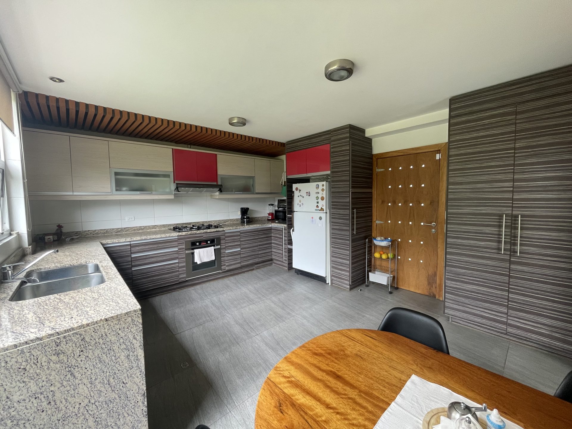 – Cocina amplia con doble acceso, alacena y mesones de mármol