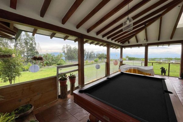 – Desde la sala se puede salir a un patio con pérgola donde esta una sala de juegos o sala de tv.