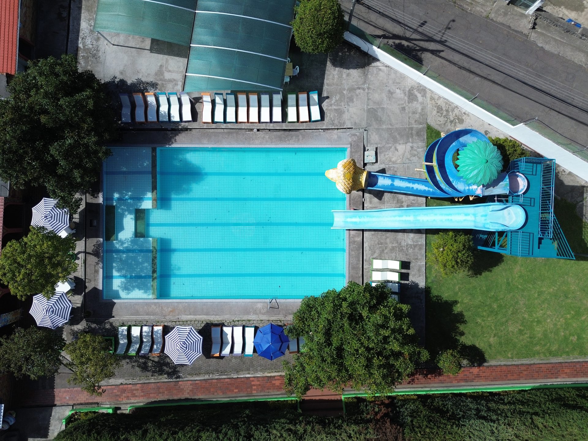 Piscina abierta con 2 toboganes (sistema diésel)