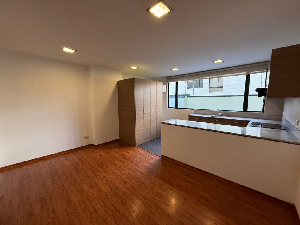 Hermoso departamento con diseño y acabados modernos, lobby con muebles Adriana Hoyos, ascensor que comunica al tercer piso de un edificio edificado en una de las zonas de mayor plusvalía de Quito, cuenta con áreas comunales en su terraza en la cual podrán deleitarse con una vista espectacular al Este de nuestra ciudad.