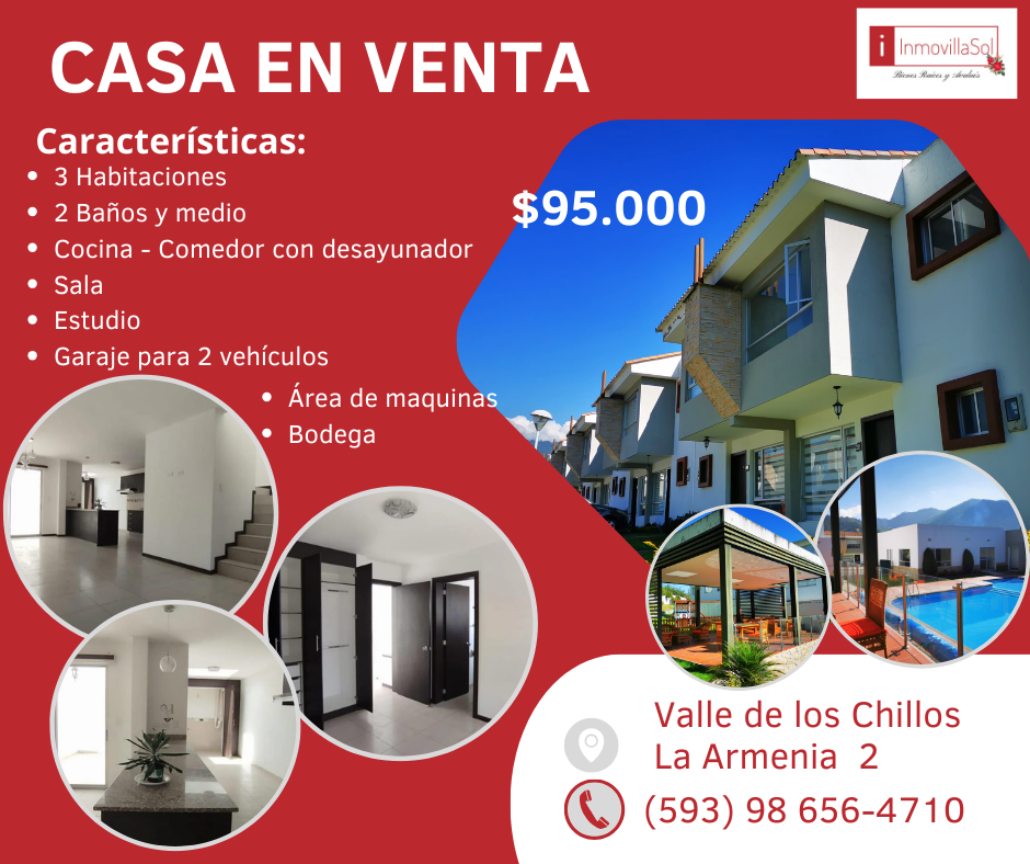 CASA de venta en Sangolqui. ✔️164m2 terreno ✔️137m2 construcción 🎯 Valor: $85.900 DISTRIBUCIÓN ⛳️Sala ⛳️Comedor 🎛️Cocina con muebles altos y bajos (incluye cocina y horno) ☀️ Bodega 🏞️Patio con área de máquinas cubierto (Con pérgola corrediza) 🛌1 Máster con baño privado y walk in closet. 🛏️2 dormitorios con baño compartido. 🚘 2 parqueaderos 🌠Terraza cubierta […]